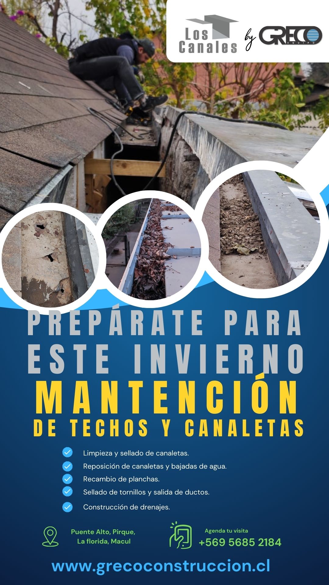 En GRECO Construcción, entendemos que una techumbre en buen estado es clave para la seguridad y durabilidad de cualquier inmueble. Nuestro servicio “Los Canales” está diseñado para prevenir filtraciones, daños estructurales y gastos mayores, abordando de forma oportuna los problemas comunes en techumbres y canaletas.